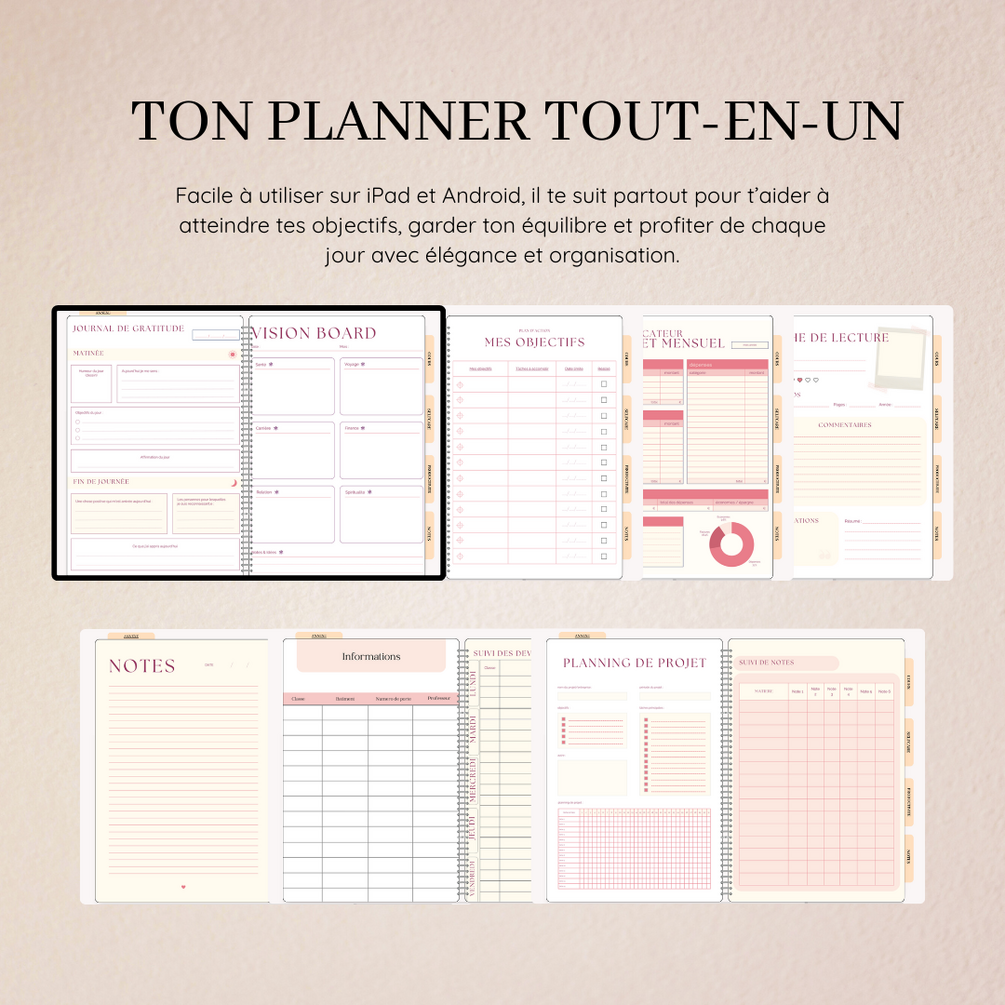 Un outil rose, coquet et motivant pour t’aider à atteindre tes objectifs, garder ton équilibre et profiter de chaque jour avec élégance et organisation.