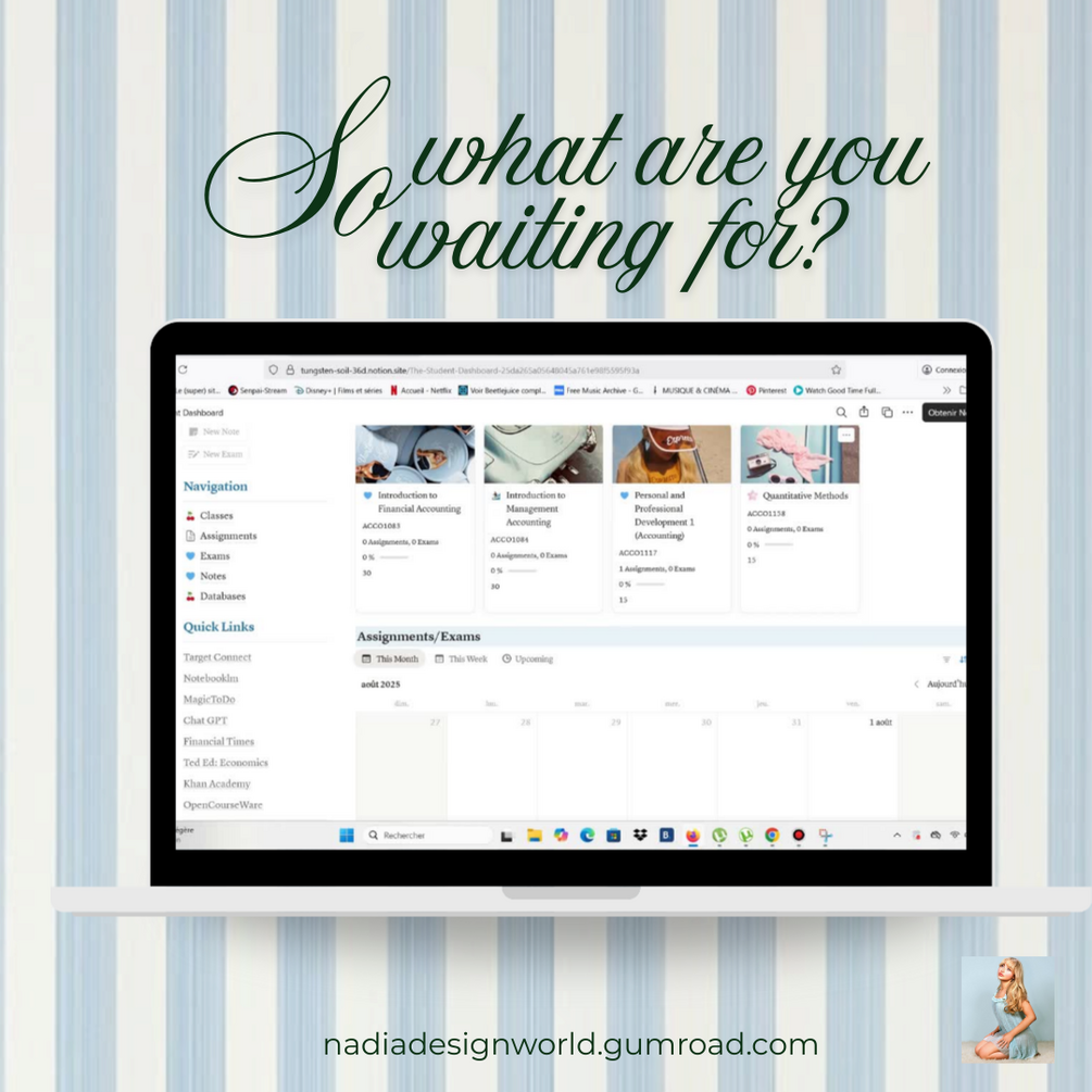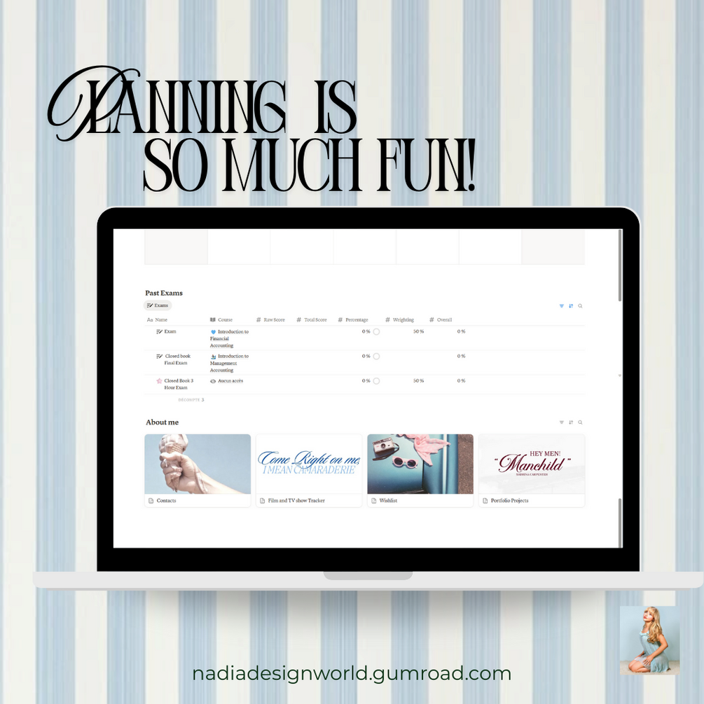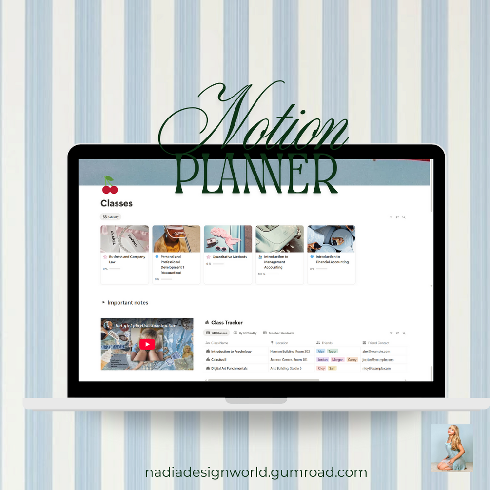 Stay organized in style with this all-in-one planner! Perfect for students, it helps you track assignments, exams, and classes while also giving space for school notes, a calendar, wishlist, and even a contacts section for friends & family. Plus, enjoy fun extras like a music video journal and movie tracker to keep school and life in balance.