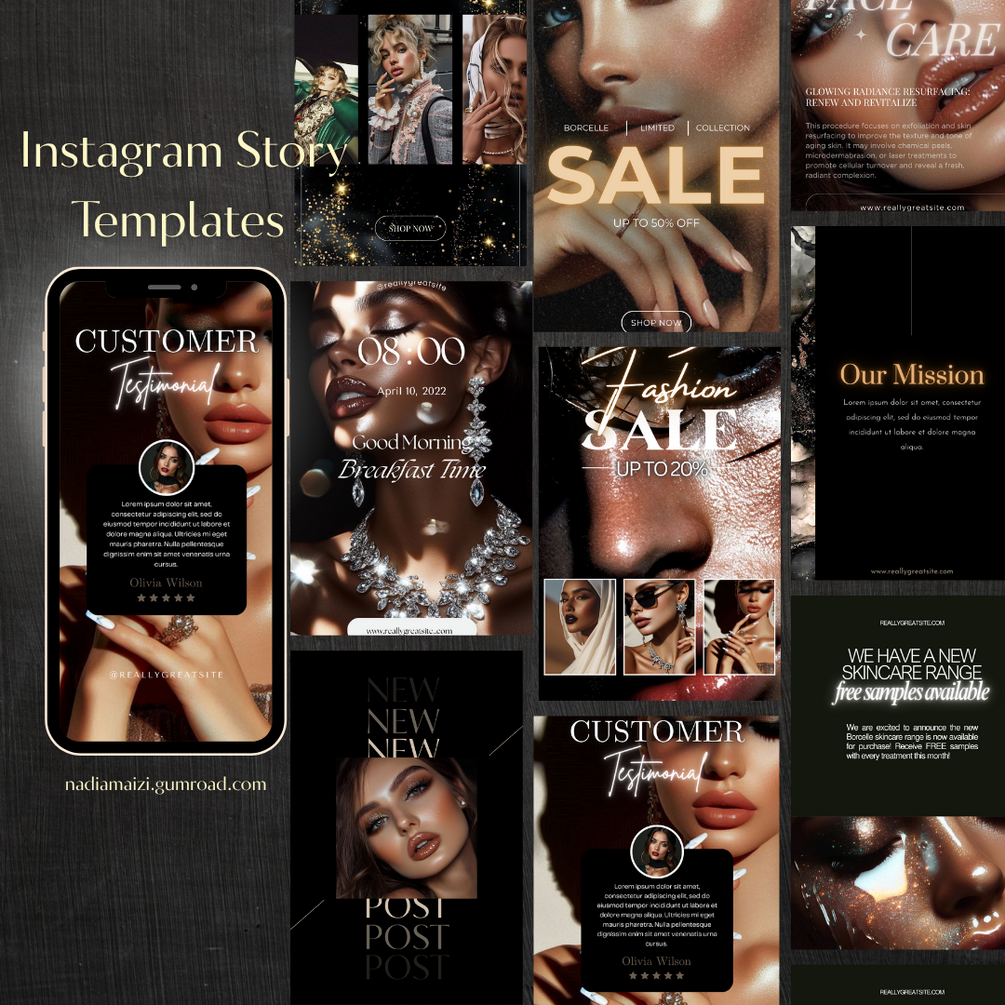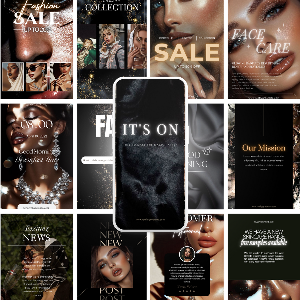 This bundle includes both Instagram Story and Feed Post formats, crafted to align with high-end, chic aesthetics. Whether you're running a fashion shop, a beauty page, or a professional service, these layouts will elevate your brand and captivate your audience.