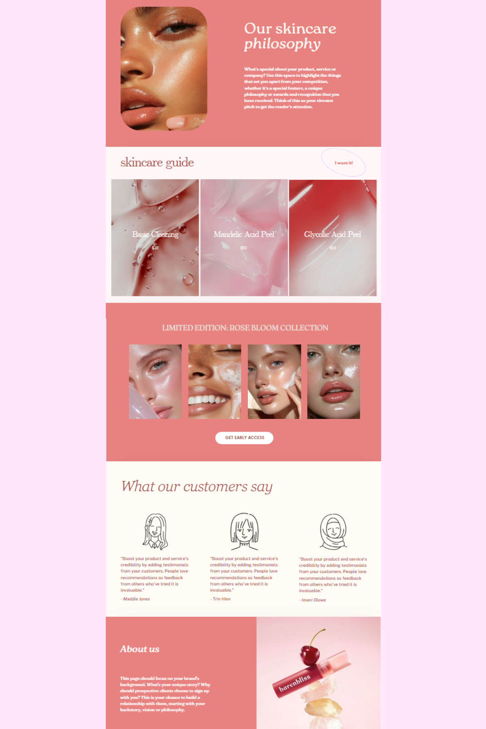 • Add your unique skincare philosophy and tone